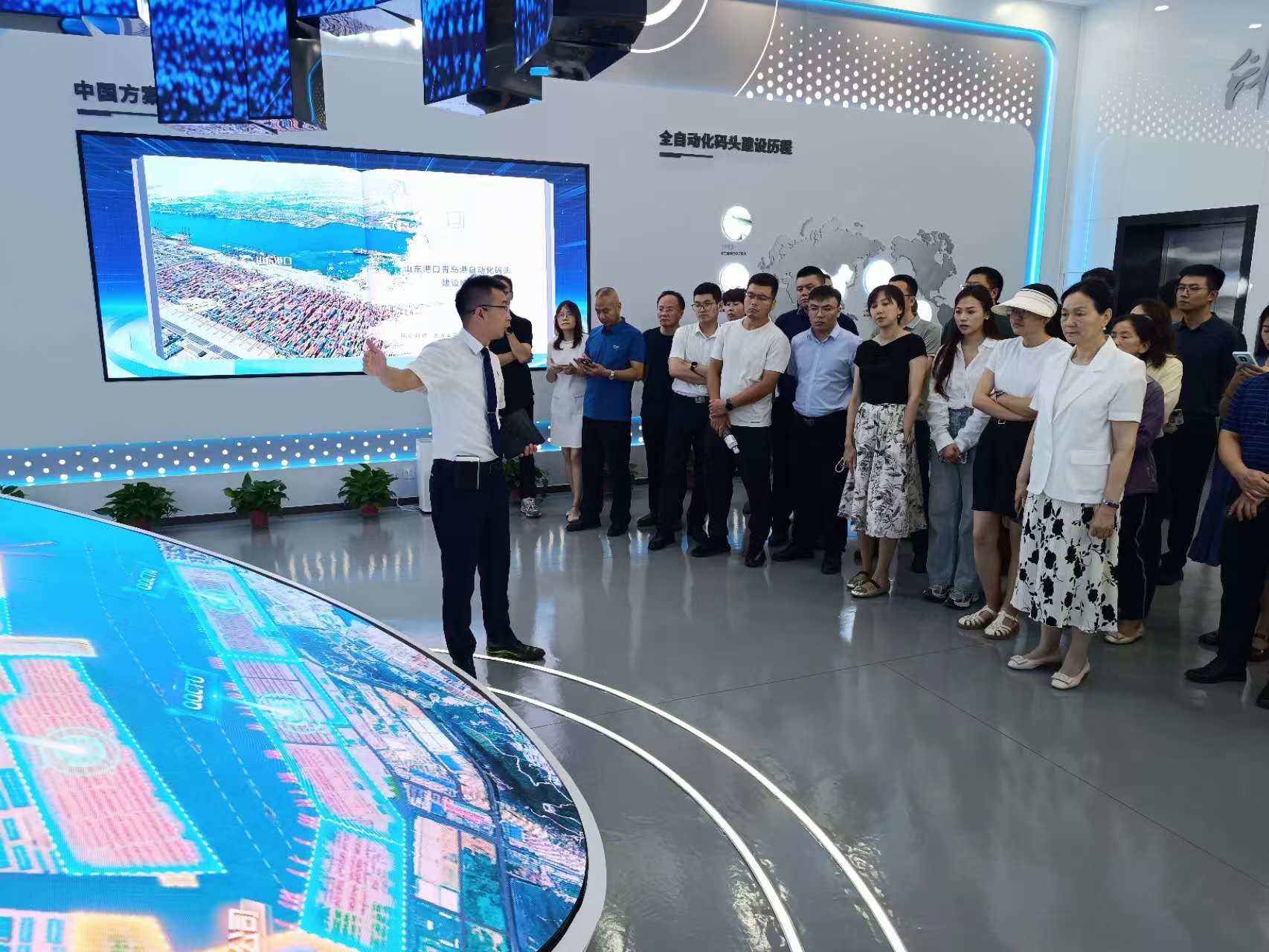 “發(fā)展新質(zhì)生產(chǎn)力,建設世界一流海洋港口”。第四站,聯(lián)絡員一行來到全球領先、亞洲首個全自動化集裝箱碼頭和首個“氫+5G”智慧綠色碼頭-山東省港口集團青島港全自動化集裝箱碼頭,這也是全國首個全國產(chǎn)全自主自動化碼頭。該碼頭實現(xiàn)了當年投產(chǎn),當年盈利,作業(yè)效率較傳統(tǒng)碼頭提升30%,節(jié)省人力80%,10次打破自己保持的自動化碼頭裝卸效率世界紀錄。聯(lián)絡員們了解了青島新前灣集裝箱碼頭有限責任公司關于智慧港口建設實踐和綠色港口建設情況。山東省港口以科技創(chuàng)新賦能產(chǎn)業(yè)創(chuàng)新、以改革探尋轉型發(fā)展最優(yōu)解的高質(zhì)量發(fā)展新路徑給聯(lián)絡員們帶來深刻啟示。